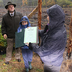 Tegoroczna, jubileuszowa 10-ta inauguracja Święta Drzewa gościła w Nadleśnictwie Opole. W obchody Święta Drzewa włączyło się także nasze Koło. W dniu 16 października 10 tyś. drzew plus jedno wyjątkowe miały posadzić dzieci z PSP im. Książąt Opolskich w Opolu. Tym wyjątkowym drzewem miał być przepiękny, blisko 3 metrowy buk zwyczajny. Pozostałe drzewka, sadzonki sosny i dęby wyhodowane na szkółce kontenerowej w Nadleśnictwie Rudy planowano wysadzić na terenie Leśnictwa Suchy Bór. Zadaniem myśliwych było sprawowanie ogólnej opieki nad dziećmi, czynne włączenie się w akcję sadzenia, oraz zapewnienie oprawy sygnalistów myśliwskich. Niestety pogoda pokrzyżowała plany leśników, myśliwych i młodzieży. Od rana padał rzęsisty deszcz, a prognoza nie dawała nadziei na najmniejszą choćby poprawę sytuacji. Dlatego też zdecydowano o ograniczeniu części terenowej do posadzenia jedynie pamiątkowego buka, chowając pod jego korzeniami zalakowaną butelkę z pamiątkowym certyfikatem podpisanym przez Nadleśniczego Zdzisława Dzwonnika, Koordynatora Programu Święto Drzewa z Klubu Gaja i wszystkie uczestniczące w akcji dzieci. Po posadzeniu drzewa, które odbyło się przy dźwiękach myśliwskiej sygnałówki i pod obiektywami mediów, uczestników akcji przewieziono na teren strzelnicy myśliwskiej w Opolu - Grudzicach. Tutaj już pod dachem a nie w strugach deszczu młodzież mogła spokojnie porozmawiać z animatorami akcji Święto Drzewa z Klubu Gaja. Dzieci i pedagodzy złożyli też na ręce leśników deklarację, że drzewa zostaną wysadzone, gdy tylko pozwoli na to pogoda. Dzisiaj, gdy piszę ten materiał 10 tysięcy drzew już rośnie.