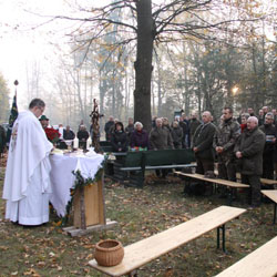 W dniu 3.11.2012r., pod obeliskiem upamiętniającym 60-lecie naszego koła, odbyła się już czwarta w historii naszego koła, polowa Hubertusowska msza święta. Pomimo wczesnej pory (mszę zaplanowano na godzinę 7:30), pogoda tradycyjnie dopisała. Mszę odprawiał członek naszego Koła, ksiądz Janusz Konowalski. We mszy oprócz członków koła i ich rodzin uczestniczyli tradycyjnie mieszkańcy okolicznych miejscowości: Maliny i Grotowic, cisi sympatycy myśliwych i łowiectwa.