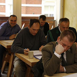 W dniu 22.11.2012r., odbył się egzamin na uprawnienia selekcjonerskie w ramach jesiennej sesji egzaminacyjnej. Egzamin obejmował część testową i ustną. Więcej o egzaminach można przeczytać na stronie WWW ZO PZŁ w Opolu. Nas najbardziej interesuje jednak, iż egzaminy zdał nasza Kolega Mariusz Krzywicki, a tym samym Koło wzbogaciło się o kolejnego członka o najwyższym stopniu wtajemniczenia. Nowemu selekcjonerowi gratulujemy, życząc by nie zapomniał o nim Św. Hubert i jeszcze w bieżącym sezonie zesłał pierwszego byka.. Zapraszamy do obejrzenia mini fotoreportażu.