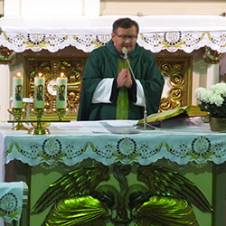 Mszę odprawił proboszcz, Ksiądz Wojciech Czekała a koncelebrował Ksiądz dr Leonarda Makiola, proboszcza Parafii pod wezwaniem Św. Matki Boskiej Fatimskiej w Opolu Grudzicach.