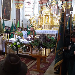 oraz rola myśliwego we współczesnym świecie. W czasie mszy ze sztandarem naszego Koła wystąpił poczet sztandarowy w skłądzie: dowódca pocztu Jacek Fornol, sztandarowy Andrzej Raczek,