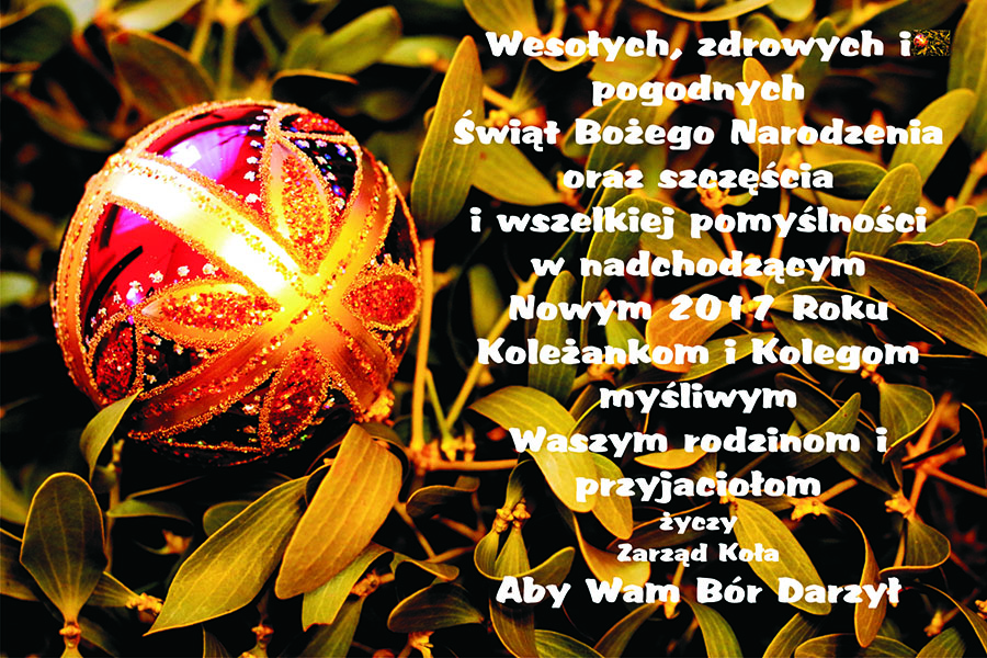 „Okręgowa Rada Łowiecka i Zarząd Okręgowy PZŁ w Opoluz okazji zbliżających się Świąt Bożego Narodzenia